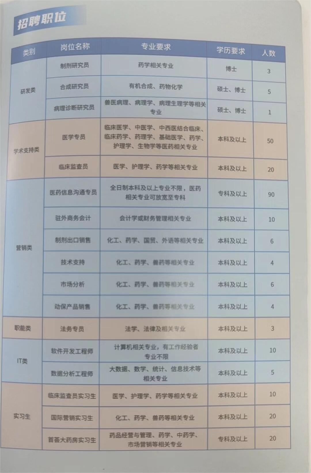 鲁南制药招聘详情