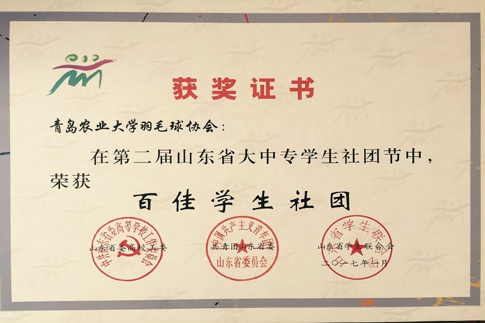 2016年11月团省委、省学联联合开展了2016年度山东省“百佳员工社团”评选活动,经层层评选,beats365唯一官网入口官网羽毛球协会当选年度省“百佳员工社团”。