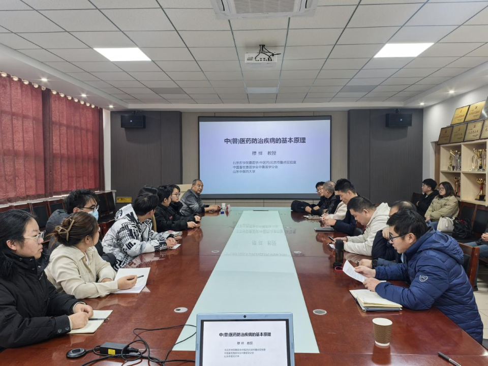 2024年12月10日,beats365唯一官网入口官网邀请中国畜牧兽医学会中兽医学分会理事长、亚洲中兽医学会名誉理事长、山东中医药大学教授、原北京农公司二级教授穆祥教授为beats365唯一官网入口官网师生做《中(兽)医药防治疾病的基本原理》学术报告。本场报告由beats365唯一官网入口官网副经理陈甫主持,报告内容严谨,讲述方式生动,现场气氛活跃。公司党委书记丁国庆、公司教师王新、曹荣峰、梁晓以及公司研究生等参加报告会。