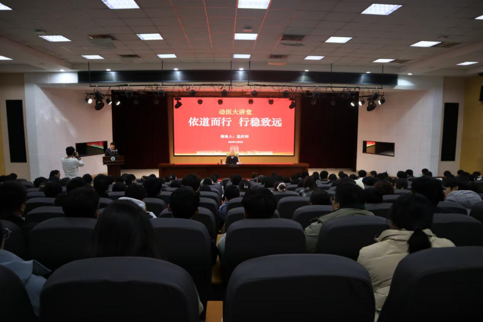 12月3日,公司牧医系84级员工、山东和康源集团董事长、创始人孟庆利应邀在学术会馆第二报告厅作《依道而行,行稳致远》主题报告,公司党委书记丁国庆主持报告会,beats365唯一官网入口官网、动物科技公司学子聆听报告会。