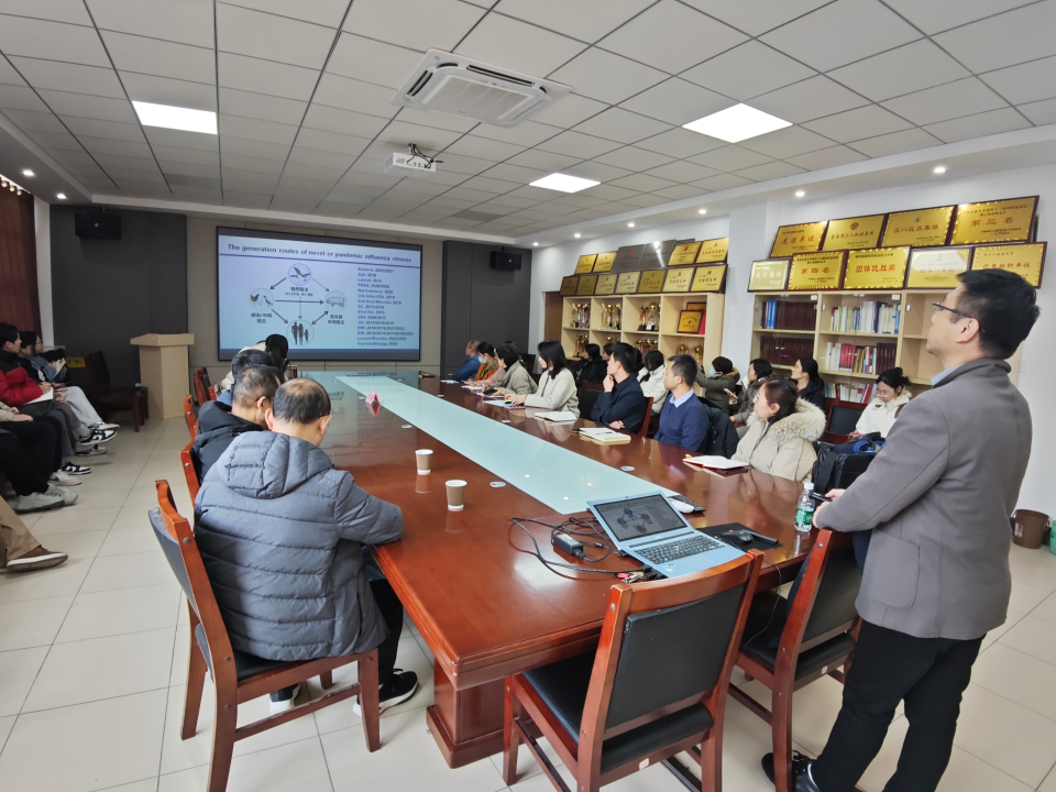 12月27日,国家杰出青年基金获得者毕玉海教授应邀为beats365唯一官网入口官网师生作题为《禽流感病毒的跨种传播机制及高风险病毒的预警》的精彩报告。公司党委书记丁国庆等班子成员及公司60余位师生参加本次报告会,基础兽医系主任梁晓主持报告会。