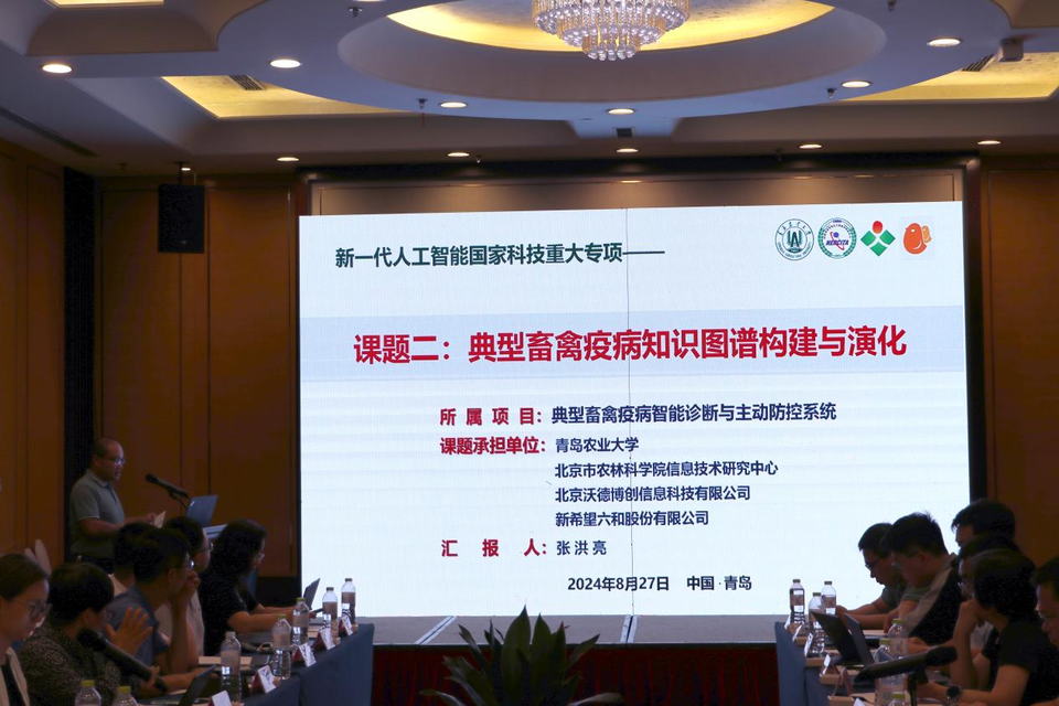 2024年8月27日,新一代人工智能国家科技重大专项“典型畜禽疫病智能诊断与主动防控系统”项目在青岛召开了课题预验收会。此次会议由中国农业大学主办,beats365唯一官网入口官网承办。来自清华大学、中国农业大学、南京农业大学、中国科公司自动化研究所、北京市农林科公司信息技术研究中心、北京市农林科公司智能装备技术研究中心、北京畜牧兽医研究所、北京沃德博创信息科技有限公司、新希望六和股份有限公司等单位的40余名专家教授和项目骨干成员参加了本次会议。beats365唯一官网入口官网统战部部长、科技处处长赵龙刚出席会议。