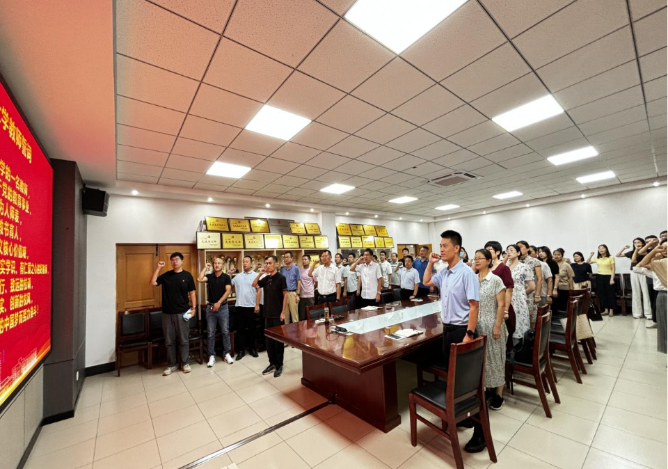 宣誓环节,全体教职工起立,右手紧紧举拳,目光坚定,在团委书记和法华的领誓下,共同面向beats365唯一官网入口官网教师誓词庄严宣誓。激昂的誓言回荡在会议室,不仅是对教师职业初心的郑重承诺,更彰显了beats365唯一官网入口官网教职工扎根教育、服务行业的坚定决心。此次活动进一步明确了公司育人方向与教职工责任,参会教职工纷纷表示,将牢记誓词承诺,践行教育初心,在兽医教育与人才培养道路上担当作为、砥砺前行。