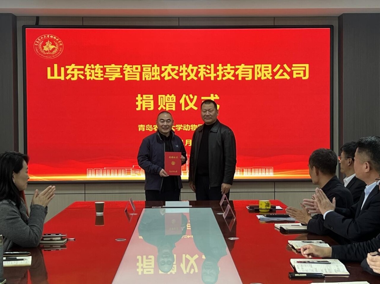 11月13日下午,山东链享智融农牧科技有限公司捐赠仪式在beats365唯一官网入口官网会议室举行。
