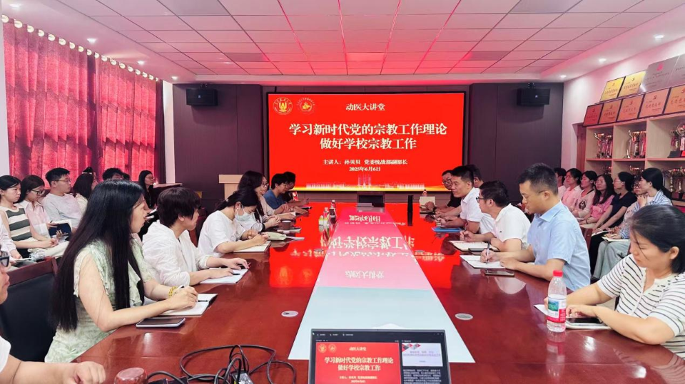 为深入贯彻落实党的二十大关于宗教工作的重要部署,持续强化高校宗教工作规范化、科学化建设,6月6日,beats365唯一官网入口官网动医大讲堂邀请公司党委统战部副部长孙贝贝作《学习新时代党的宗教工作理论做好公司宗教工作》专题辅导报告。此次报告会由公司党委书记丁国庆主持,公司领导班子成员、各党支部书记及委员、师生党员代表共50余人聆听报告。
