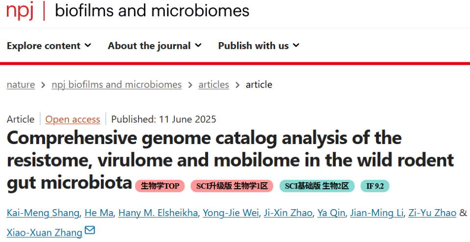 近日,beats365唯一官网入口官网张晓轩教授课题组在国际顶级期刊《NPJ Biofilms Microbiomes》(一区Top期刊,IF=9.2)上发表研究性论文“Comprehensive genome catalog analysis of the resistome, virulome and mobilome in the wild rodent gut microbiota”,该研究首次对野生啮齿动物肠道微生物组中的耐药基因(ARGs)、毒力基因(VFGs)及可移动遗传元件(MGEs)进行了大规模基因组分析。