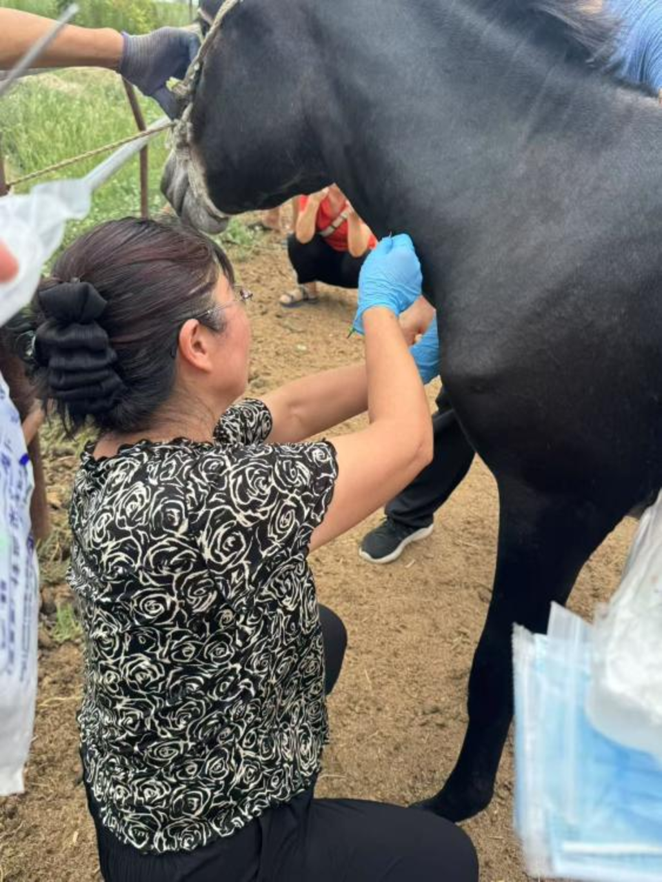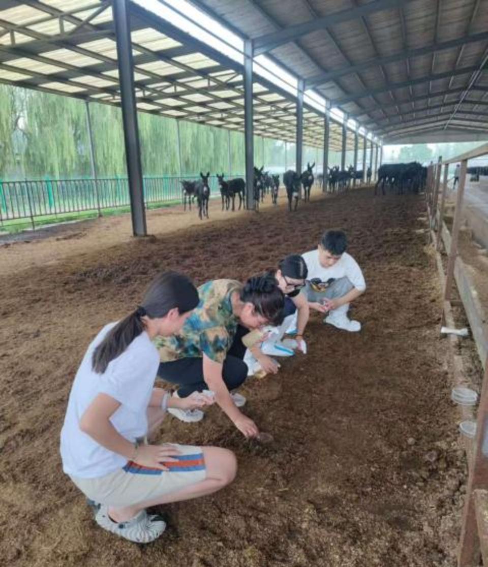 8月6日上午,团队来到德州禹城驴场。作为当地规模较大的繁殖基地,该场对母驴健康尤为关注。期间,团队成员重点对繁殖母驴相关样本实施检测,并在采集血液样本的同时,结合场区管理实际,系统讲解马流产沙门氏菌的传播途径、临床症状与科学防控措施。