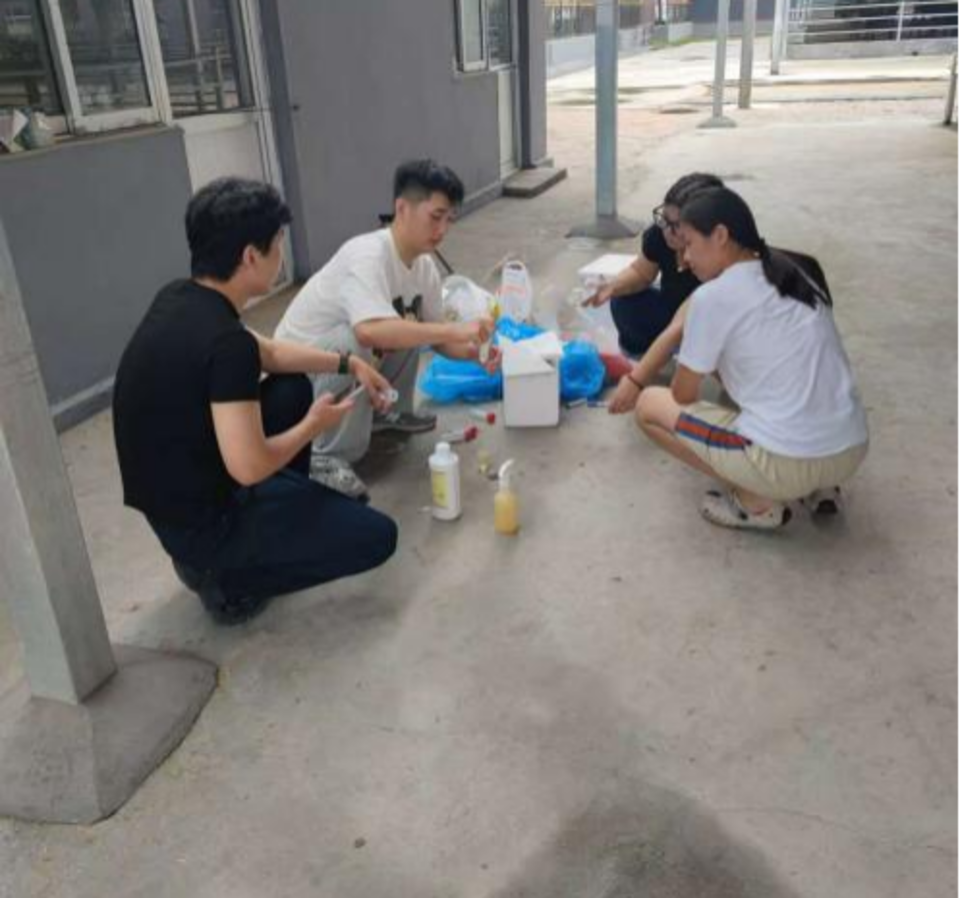8月6日下午,团队来到潍坊安丘。在开展工作期间,团队除完成常规样本检测外,还将饲料储存区、环境死角等关键区域都纳入采样范围,确保采样工作“不留盲区”,全面覆盖风险点位。